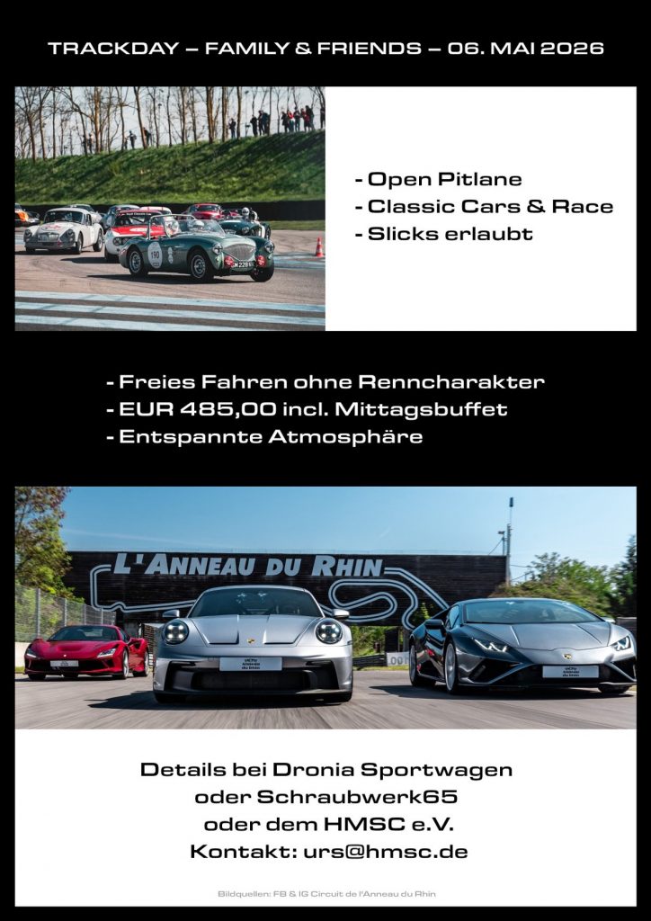 Der Hesse Motor Sports Club e.V. zusammen mit Unterstützung der Dronia Sportwagen GmbH und dem Schraubwerk 65 laden Euch zum Family & Friends Trackday ein!